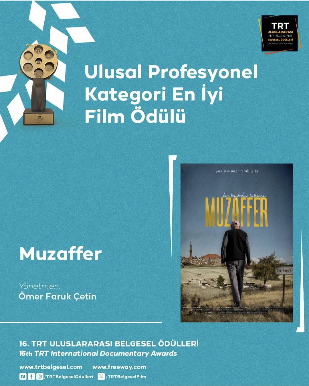 Akdeniz Üniversitesi İletişim Fakültesi Radyo, Televizyon ve Sinema Bölümü 2019 mezunu Ömer Faruk Çetin, “Muzaffer” adlı belgeseliyle yarışmanın Profesyonel Kategorisi’nde En İyi Film Ödülü’nün sahibi oldu. Çetin’in eseri, güçlü anlatımı ve teknik kalitesiyle jüri tarafından tam not aldı.