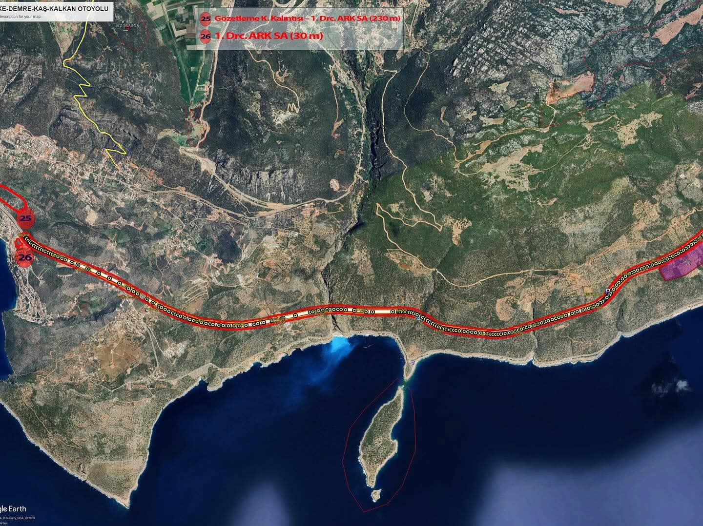 Çevre Şehircilik ve İklim Değişikliği Bakanlığı’nın 2021’de başlattığı ve 17 Ocak 2025’te “ÇED olumlu” kararı verilen Finike-Demre-Kaş-Kalkan Bölünmüş Yol Projesi, çevre örgütleri ve meslek odalarının tepkisine yol açmıştı. Kaş Çevre ve Kültür Derneği, Mimarlar Odası Antalya Şubesi, Peyzaj Mimarları Odası, Doğa Derneği ve 127 yurttaşın açtığı dava sonucunda, Antalya 2. İdare Mahkemesi projeye ilişkin yürütmeyi durdurma kararı verdi.